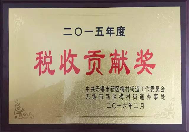 近日,為表彰2015年度對無(wú)錫市新區梅村經(jīng)濟工作作出突出貢獻的企業(yè),無(wú)錫新區梅村街道召開(kāi)了先進(jìn)表彰暨作風(fēng)建設大會(huì )。無(wú)錫華海2015年度實(shí)現各項稅收1.01億元,榮獲由中共無(wú)錫市新區梅村街道工作委員會(huì )和無(wú)錫市新區梅村街道辦事處聯(lián)合授予的“2015年度稅收貢獻獎”。此殊榮的獲得也體現了我司為增加地方財稅收入和助推經(jīng)濟發(fā)展做出了巨大的貢獻。